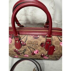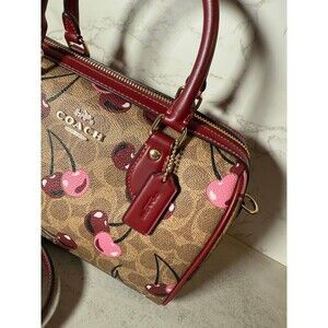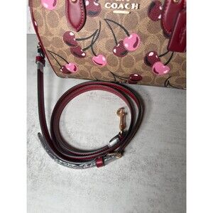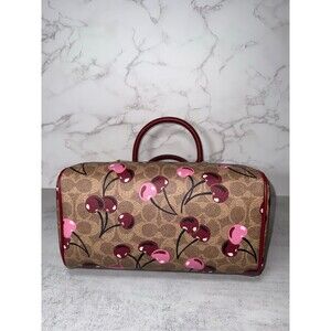 100% Authentic Coach Rowan Satchel Bag in Signature Canvas with cherry print