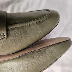 Elegant leather slip-ons by Coach. Features a chic design with a metallic logo detail.
