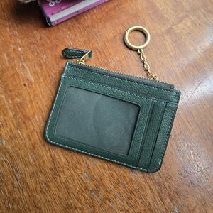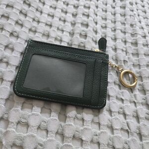 Chic sage green card holder by Coach. Features brass accent for a luxurious touch. Ideal for keeping essentials organized. Like new condition! just didn't work out for my needs.