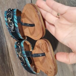COACH Sammy Sandals Navy Turquoise Patent Leather Canvas