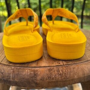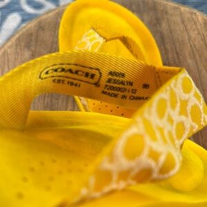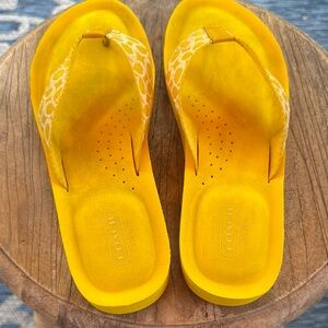 Embrace the sunny season with Coach's vibrant yellow sandals, featuring a cheerful color and a simple, clean design. Very soft! Great shape!