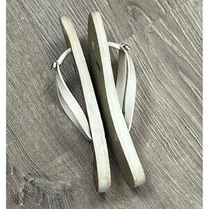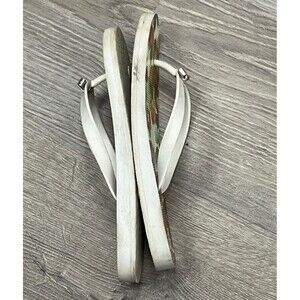 Coach Sandals Amel Signature Flip Flops Womens 8 Silver Bow White Thong Shoes