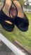 Like New Coach Black Suede Leather Open Toe Stiletto Heel Sandals Mules Made in Italy