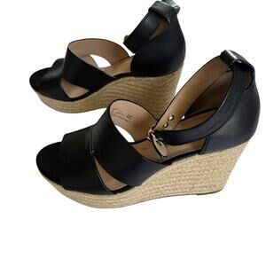 Coach Sandals Women's Black 10 Isla Wedge Ankle Closure Espadrille Heels