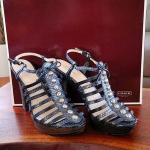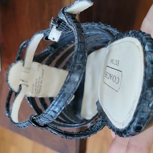 Coach Sarafina Charcoal snake skin leather platform heels.