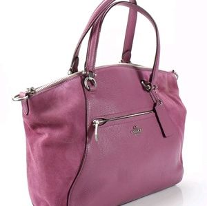 Coach Primrose Pink Silver Prairie Pebbled Leather Suede Satchel Bag