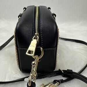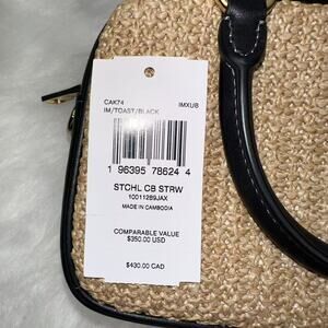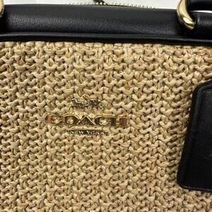 New With Tags, Coach Satchel Crossbody Bag In Straw & Leather CAK74 Gold/Toast/Black NWT from smoke and pet free environment.
