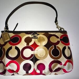 Coach Satin Multi Colored Monogram Clutch Wristlet