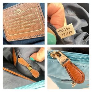 Coach Sawyer Canvas & Tan Leather Crossbody Bag in Blue Jay, Front Zipper Pocket