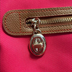 This bag is soooo roomy! It was marketed as a diaper/tote bag, could be used for either. Noted small ink/stains on the outside of the bag as pictured. The inside is in great condition.