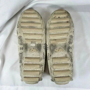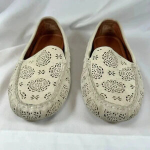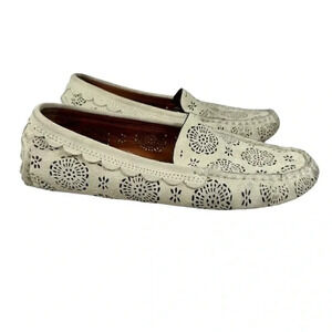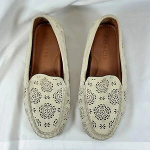 Coach Scallop Medallion Size 7B Suede Loafers Cream Laser Cut Luxury Driving