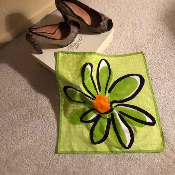 Coach green, orange, white and black scarf