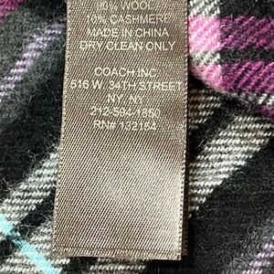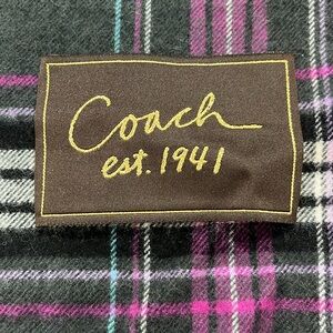 Coach Scarf Wool Cashmere Gray Plaid Tartan Fringed OS Classic Preppy