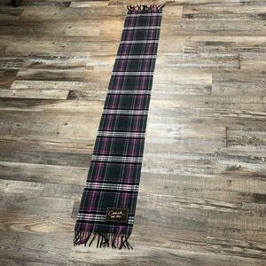 Coach Scarf Wool Cashmere Multi Color Plaid Tartan Fringed OS Classic Preppy