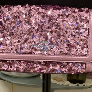 Coach Sequined Flap Clutch Crossbody Lilac Bag/Clutch