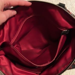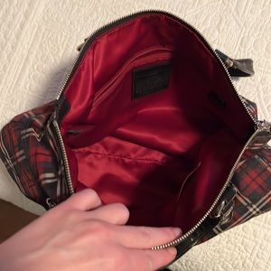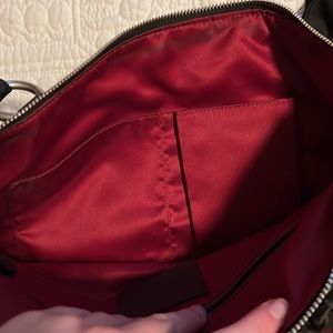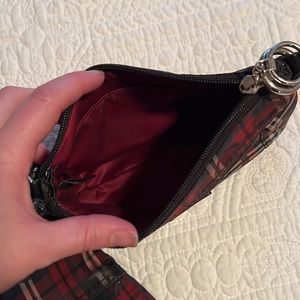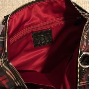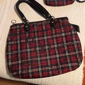 Matching Coach bag and wristlet. Discontinued style. Colors are red, black, cream, and navy. Both are in excellent condition.