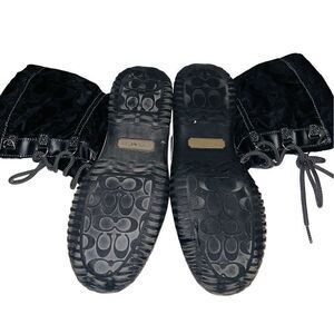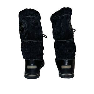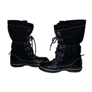 These Coach snow boots for women are perfect for the winter season. With a signature C pattern and Coach logo accents, they are stylish and unique. The lace-up closure ensures a secure fit, and the flat heel height provides comfort for all-day wear.