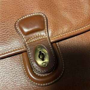 This Coach crossbody bag features a sleek, structured design crafted from smooth brown leather. Its adjustable shoulder strap and turnlock closure add both functionality and style, making it an ideal choice for everyday wear.