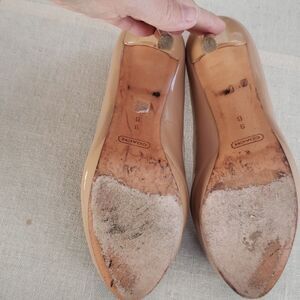 Coach Shoe Womens 9 Starla Nude Bow Peep Toe Platform Patent Leather Pumps