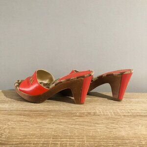 Coach Shoes Kathie Size 6.5 Orange Gold Brown Leather Signature Logo Chestnut