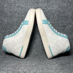 Coach Shoes Mens Size 10 White Teal High Top Signature C Monogram Lace Up CV222