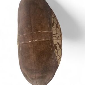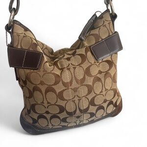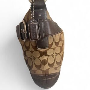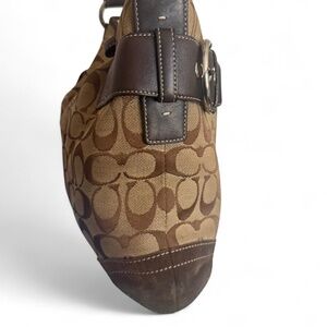 Coach Shoulder Bag Womens Brown Signature Canvas Suede Buckle