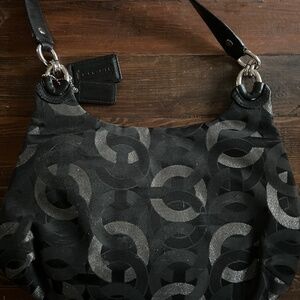Small cloth “C” printed Coach shoulder purse. Excellent used condition. No signs of wear.