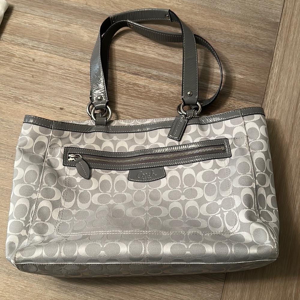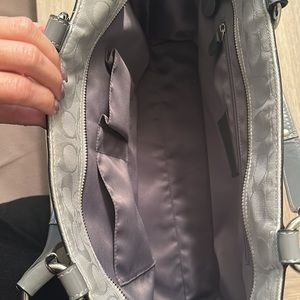 Coach large shoulder bag. Gray with gray interior and silver hardware. Great laptop bag or baby bag. Zipper pocket outside. Zipper pocket and 2 open pockets inside.
