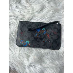 Coach Sierra Wristlet Black Signature With Blue Birds 8x5