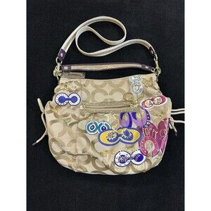 Coach Signature 15311 Jazzy Poppy Multi Canvas Shoulder Handbag Purse