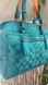Super cute vintage & Y2K core aqua signature fabric coach bag, leather handles, suede corners. Features premium craftsmanship. Overall EUC. Some notable wear to suede around corners and trim. No stains, rips, tears.