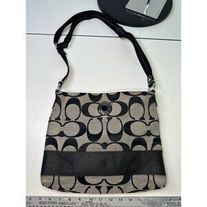 Coach Signature Authentic Khaki Brown Stripe Crossbody File Bag F-19220 Purse