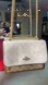 Chic Coach crossbody with signature pattern. Features beige and brown tones. Gold chain strap adds elegance. Purse ships next business day. Klare Crossbody Bag In Blocked Signature Canvas