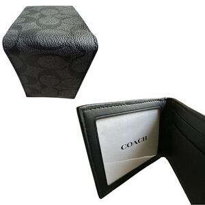 Elevate your essentials with this Coach Signature Black Bifold Wallet, crafted from high-quality coated canvas and smooth leather. Featuring the iconic Coach monogram print, this stylish and functional wallet is perfect for everyday use.