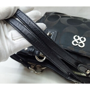 Coach Signature Black Canvas Double Handle Satchel Shoulder Bag