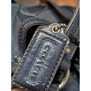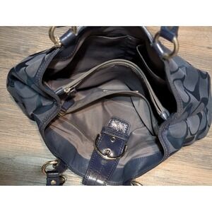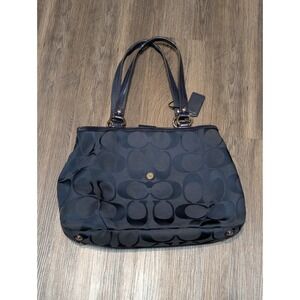 Keywords: Coach, Handbag, Purse, Shoulder Bag, Black, Canvas, Leather Trim, Signature, Designer Bag, Luxury, Accessory, Womens Bag, Tote Bag
