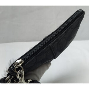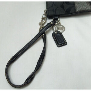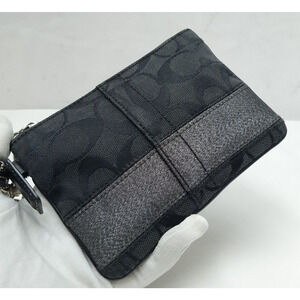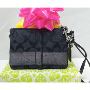 Coach Signature Black Canvas Stripe 65th Ann. Zipper Wristlet - Coin Wallet