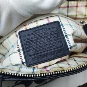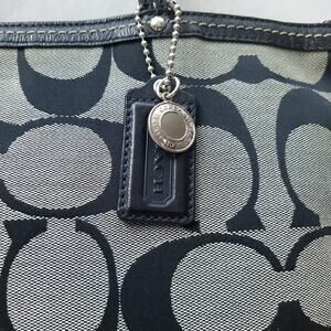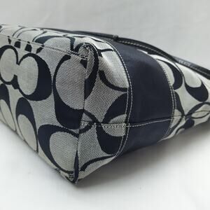 Coach Signature Black Canvas Leather Trim Double Handle Zipper Tote Shoulder Bag
