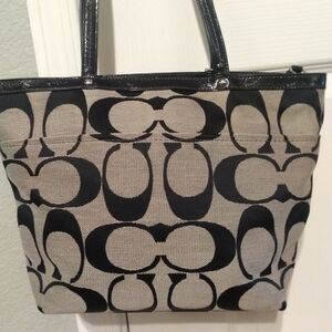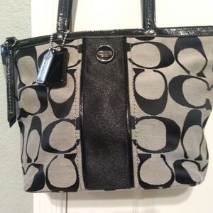 Coach Signature Black Canvas Stripe Tote Shoulder Bag Handbag Purse F21950 EUC