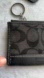 Elegant black card holder by Coach. Features signature pattern and attached keychain.