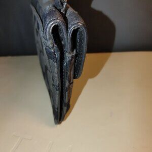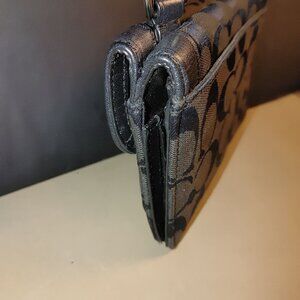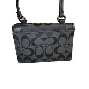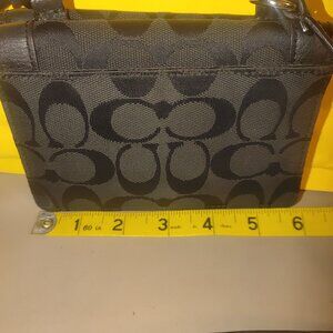 Coach Signature Black Crossbody Wallet Canvas Leather Turnlock Closure Compact