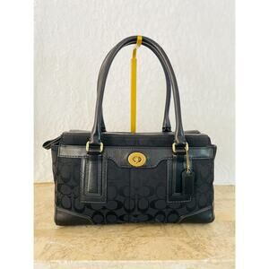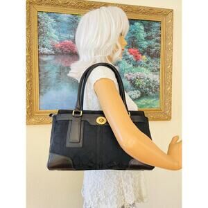 Coach Signature Black Hampton Flap Bag 11062 Satchel/Carryall