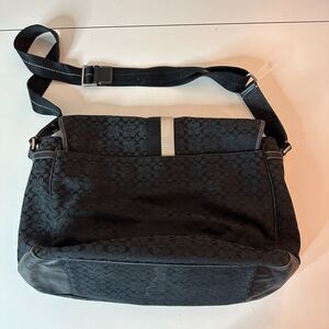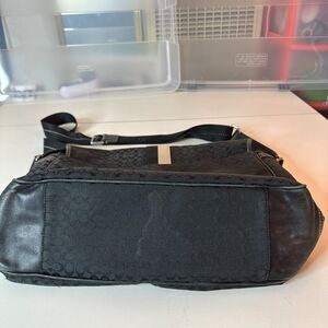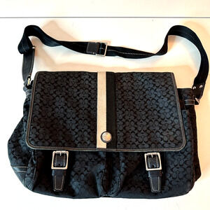 Coach is known for its quality craftsmanship, and this bag is likely made with attention to detail and durability in mind. The Signature black Logo adds a classic and timeless appeal, allowing it to easily complement various outfits while being stylish and versatile. This bag features the Coach signature logo pattern on black coated canvas, giving it a sleek and recognizable look.