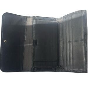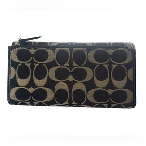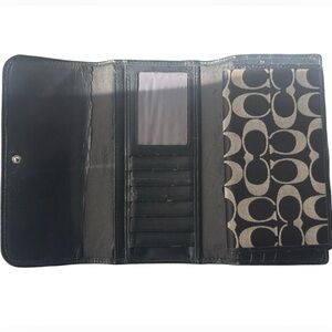 Elegant Coach wallet featuring a signature pattern in black and gray. Does have peeling inside