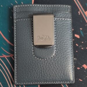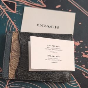 Elegant Coach card holder with signature pattern. Perfect for organizing cards. Stylish and functional.