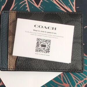 Coach Signature Black and Tan Card Holder
