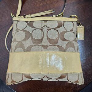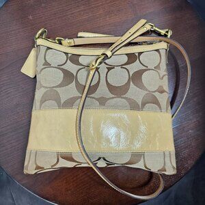 Coach Signature Blue Canvas Leather Shoulder Crossbody Handbag Purse 12431