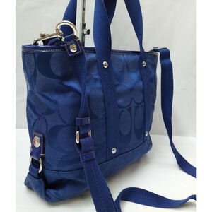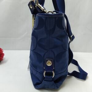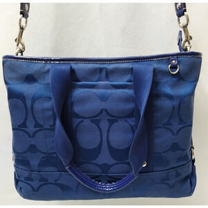 Coach Signature Blue Canvas Paten Leather Double Handle Satchel Shoulder Bag