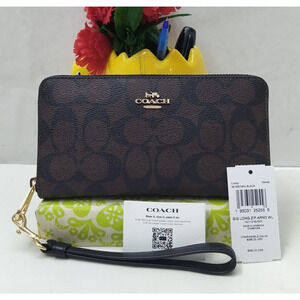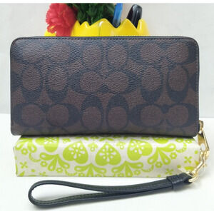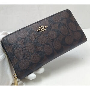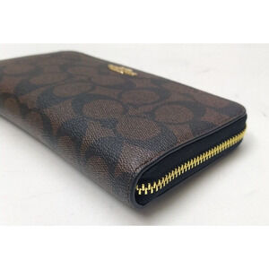 Coach Signature Brown Leather Zip Around Credit Card Long Wallet - NWT $298