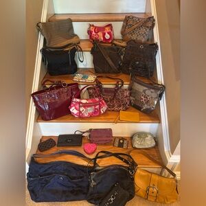 how much is the small black purse at the top right and the big one with tan leather and small coach designing?